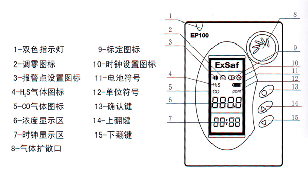 测量精度高 传感器采用进口气体敏感元件,具有精度高、可靠性强、响应和恢复时间快、气体选择性好,抗干扰能力强。 显示直观、清楚 采用LCD液晶屏,并带有背光,按键操作可点亮背光,如3秒内无操作可自动熄灭。 低功耗 体积小、重量轻、功耗低 防爆方式 本质安全型可用于危险区域1、2区。 工作时间长寿命长 采用高能锂电池,工作时间长达3000小时。