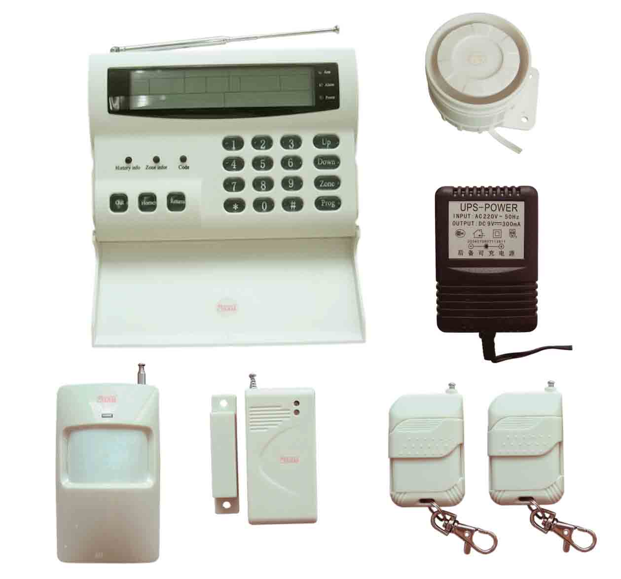 功能:彩色背光中文显示屏,八无线防区/七有线防区,远程布防/撤防/监听,探测器自动巡检,全语音远程操作提示,储存40条历史报警信息,可选择电话网或总线制连网方式,可控制四路家电,配置:主机一部+遥控器2个+门磁1个+红外1个+喇叭1个+后备可充电源1个+电话线一条