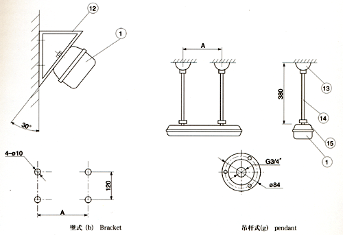 ● 可根据用户要求配装应急装置,当外界断电时,灯具自动切换到应急照明状态 |