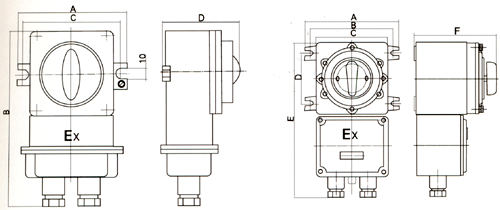 ● 内装转换开关,用于电流60A以下的电气线路中,作为电源引入开关,并可控制电动机起动、变速、停止、换向等。