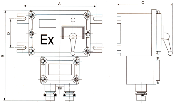 ● 内装交流接触器,热继电器,自复位万能转换开关等。