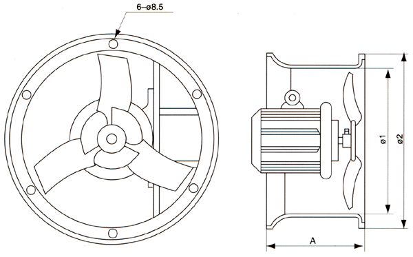 ● 防爆轴流风机由防爆电机、叶片、风筒等部件组成。