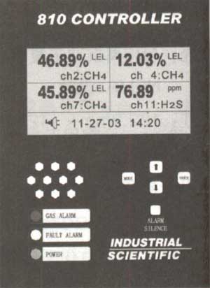 810有不同频率的声、光报警(高、低浓度和故障报警),同时提供功率10W输出到外部报警单元,而且可将报警的时间、原因、通道位置存入故障记录中,供工作人员查阅。其可滚动显示16个通道的气体读数,并可查看和设置所有通道的报警和控制参数,在LCD显示屏上滚动显示的通道位置和故障信息。810可以对现场的智能传感器或iTRANS™进行校零、标定;还提供可供用户组态的友好人机对话界面和消音按键,及可供用户选购的16路可任意编程的继电器阵列(包括继电器动作通道、条件、方式和状态),方便用户现场使用。 |