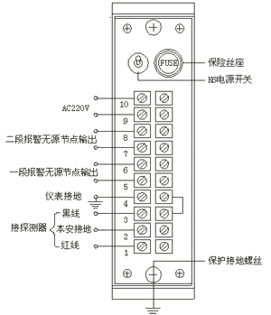 第一段、第二段报警无源触点输出(触点容量DC24V/0.5A)。