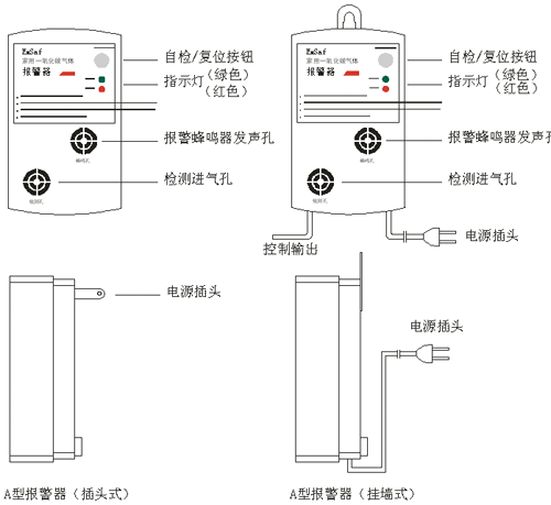 检测原理:半导体式。 检测气体:CO。 报警设定:100ppm. 报警方式:声光报警。 报警输出:继电器触点输出,触点容量220V/2A。 电 源:AC220V/50Hz。 功 率:2.5W。 温度范围:0℃~+40℃。 湿度范围:20~95%RH。 尺寸重量:125 X 75 X 35 约380g。