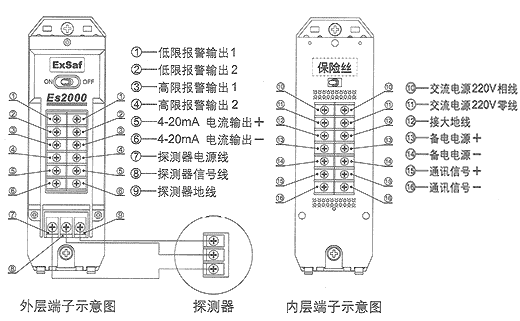 检测原理:半导体式(ES2000-A),催化燃烧式(ES2000-C)。