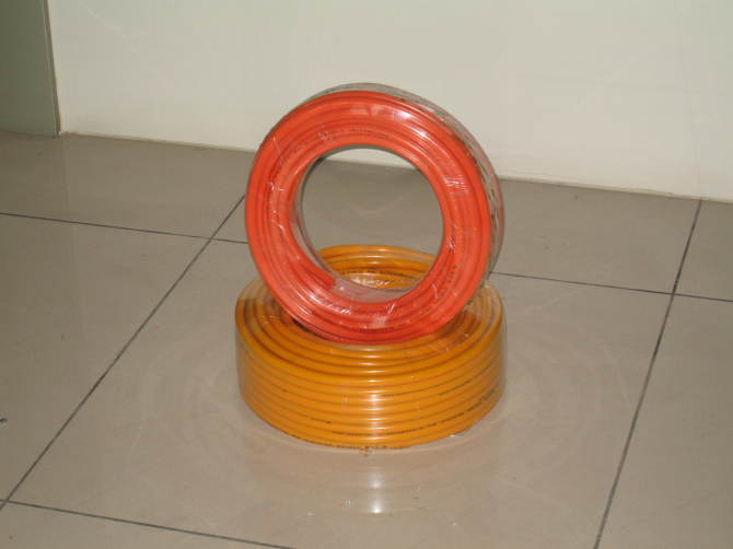原材料材质为PVC,柔软,阻燃,耐腐蚀,适合于家用燃气具连接。有单层、双层、两种型。每一层的颜色不一样。外观有光滑和带条纹两种。外表可印字。