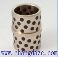 石墨铜套是在高力黄铜的基体上。镶嵌石墨或MoS2固体润滑剂的一种高性能固体润滑产品。它突破了一般轴承依靠油膜润滑的局限性。在使用过程中,通过摩擦热使固体润滑与轴摩擦,形成油、粉末并存润滑的优异条件,既保护轴不磨损,又使固体润滑特性永恒。它的硬度比一般铜套高一倍,耐磨性能也高一倍。